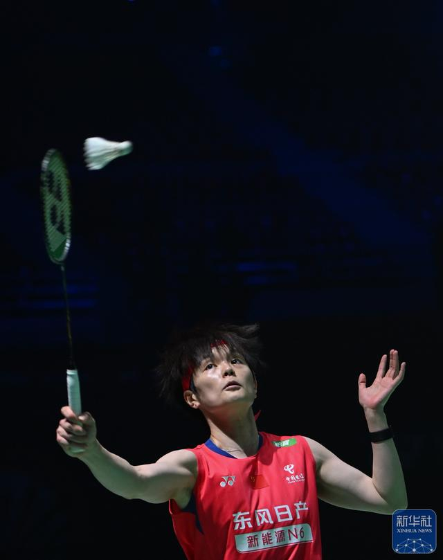 ↑ 陈雨菲在比赛中回球。